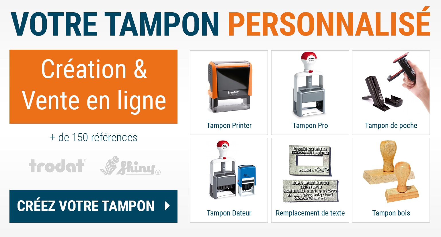 Profitez du 2ème tampon identique pour 1€ ttc. Un grand choix de tampons encreurs personnalisés, à la demande. Fabricant de tampon encreur trodat et colop depuis 1998. Le fabricant de tampon personnalisé. Fabrication de vos tampons en atelier à nantes.